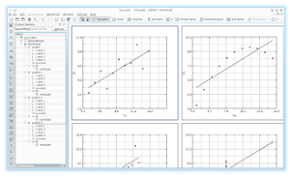 - Ajustes lineales y no lineales a los datos, se predefinen varios modelos de ajuste y se pueden proporcionar modelos personalizados con un número arbitrario de parámetros