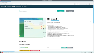 Lo más probable es que encontremos el componente de escritorio KDE Connect como un paquete en los repositorios de su distribución. De no ser así, podemos utilizar la opción 1Click Install de openSUSE