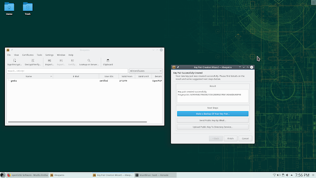 Kleopatra es un administrador de certificados y GUI para GnuPG. El software almacena los certificados y claves OpenPGP. En asociación con el cliente de correo electrónico de KMail, también puede aprovechar las ventajas de las funciones criptográficas para su comunicación por correo electrónico.