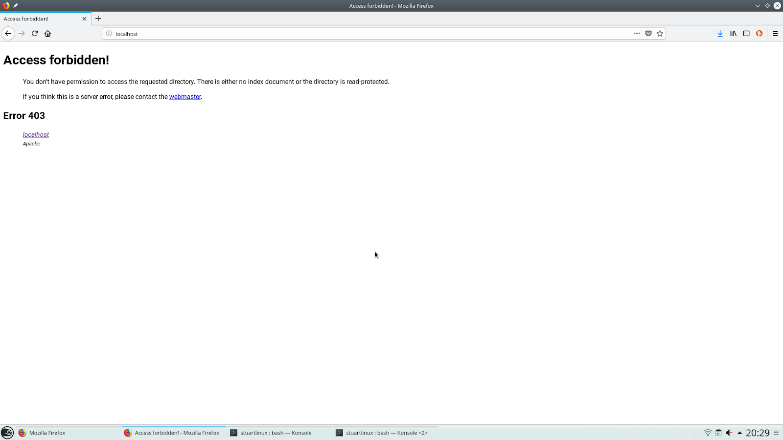 Por default, cuando se detectan 3 solicitudes de la misma dirección ip a nuestro servidor en periodos de 6 microsegundos, los módulos security2 y evasive entran en acción para denegar las peticiones, (para que podamos tener acceso nuevamente a nuestro servidor Web, sólo basta con esperar un lapso no mayor a un minuto para intentarlo nuevamente).